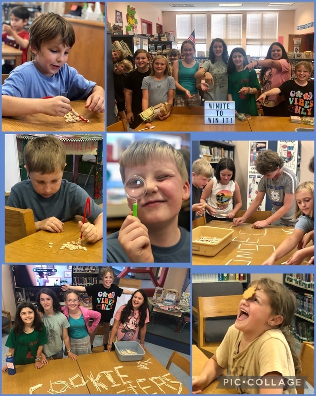 Students who participated in the Summer Reading Program celebrated in the library Friday with a "Minute To Win It" style game. Forty-six NCS children from Grades 1-7 took part in the fun. They balanced pom-pom filled plates on their heads, threaded Cheerios one-handed onto pipe cleaners, and even moved a cookie from their forehead to their mouth with no hands. Excitement was running high as everyone received a certificate for their achievement, a prize bag and a sweet treat for their hard work. GO LIONS!